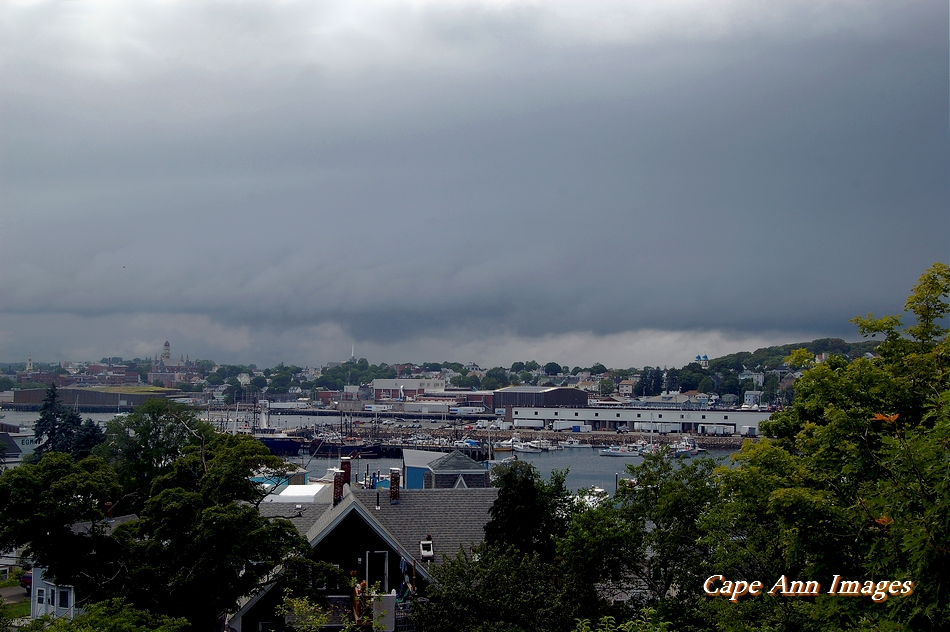 Tornado warnings were issued here around 2:00 pm, a rare occurrence for these parts. So it was up the hill to see a clear view of the Gloucester sky. Luckily all we got was tropical downpours.