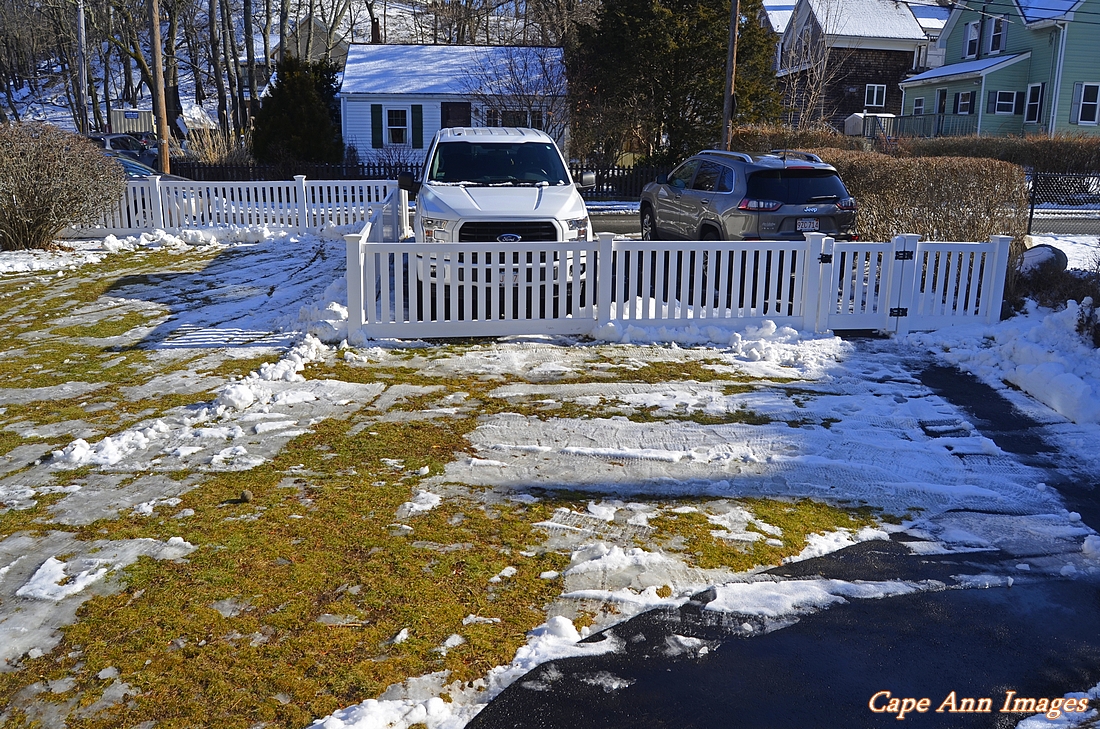 So far we've been lucky as far as snow is concerned, only two snow storms the plows came out for. This post is a day late, I didn't take enough shots for much content but did take a side trip to Essex Monday afternoon. But last week a came across an unusual accident on my way home. A car was sitting on the rocks at Bass Rocks. According to the police a 35 year old local man said he was traveling down Mooreland Road at 50 mph ( the posted speed limit is 25 mph) and "didn't realize there was an intersection there"!